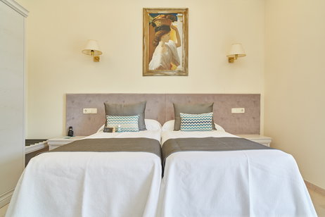 Relax in our Side Sea View Double Room, a cozy and comfortable space with two single beds. Enjoy a peaceful atmosphere, perfect for a restful experience. Ideal for those looking for a pleasant and relaxing retreat, with a touch of marine freshness.