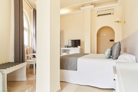 Relájate en nuestra Habitación con Vista Mar Lateral y Terraza. Un espacio cómodo y acogedor, ideal para disfrutar del aire fresco y las vistas parciales al mar. Perfecta para una estancia tranquila y agradable.'